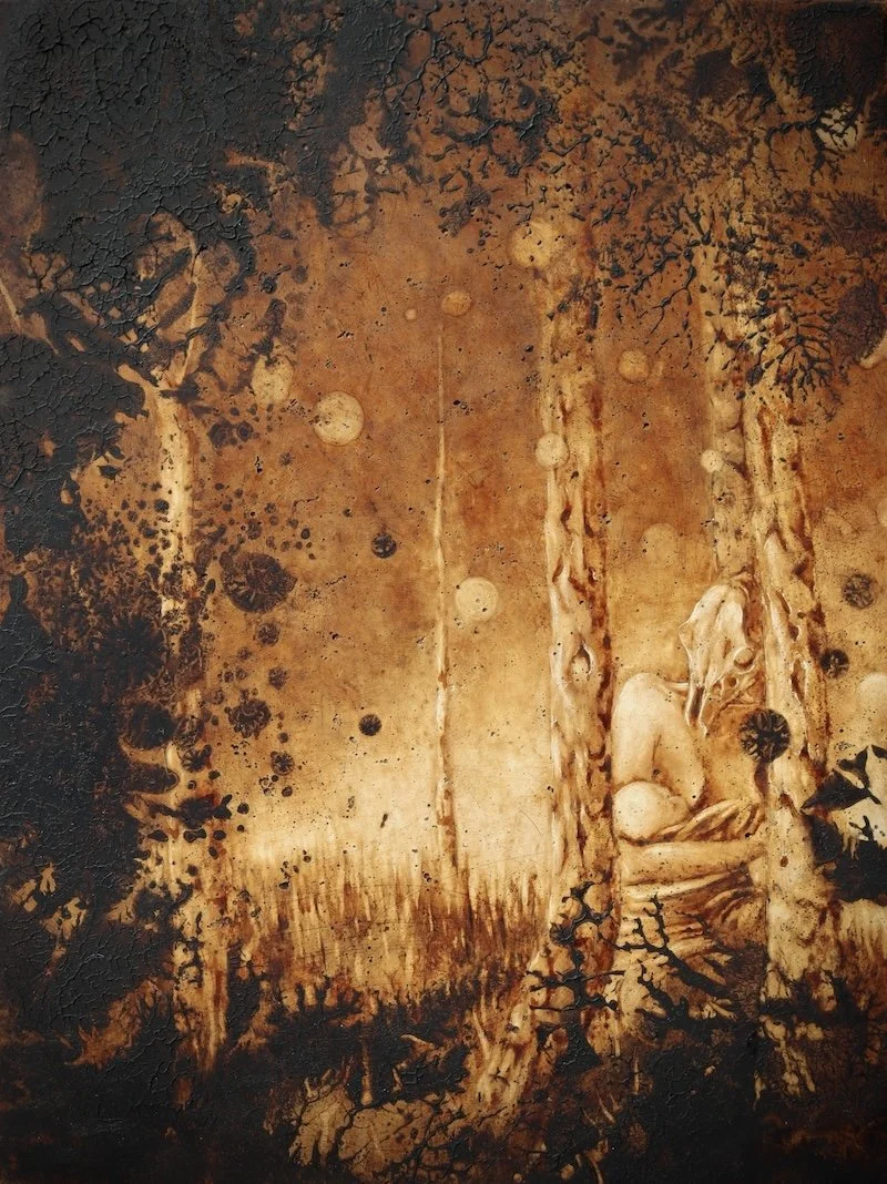 Alder cone ink with bone black pigment (fox, crow, roe deer) in linseed oil on gesso and oak