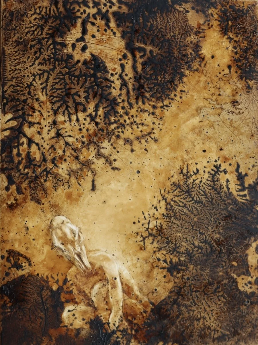 A series of drawings exploring ideas of interdependence and reciprocity generated by the Mesolithic finds at Star Carr. Turning to another age of climate change and rapidly rising sea levels, the ancient continuum of pigment-making functions as a lens through which to look towards the possibility of a regenerative future.